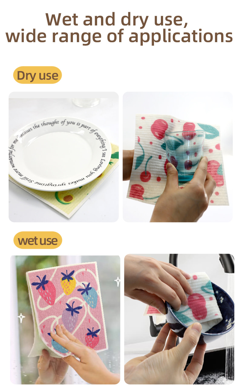 A cellulózszivacs fő nyersanyagként tiszta természetes fapépet használ, puha textúra, nem stimulálja a bőrt, azonnal sok vizet képes felszívni./ Használat után mossuk és gyúrjuk szárazra, szárítsuk meg és megkeményedjük, megakadályozzuk a baktériumok elszaporodását, gyorsan bejutunk a vízbe, hogy puha legyen, forralható fertőtlenítés, sterilizálás, a hulladék lebomolhat a természetes talajban, védi a környezetet. /Égéskor káros anyagok nem keletkeznek. Ezt a szivacsot elsősorban konyhai takarításhoz, szépségápoláshoz, egészségügyi fürdőhöz, autószépséghez, elektronikai összeszerelő iparhoz, nyomdaiparhoz használják.