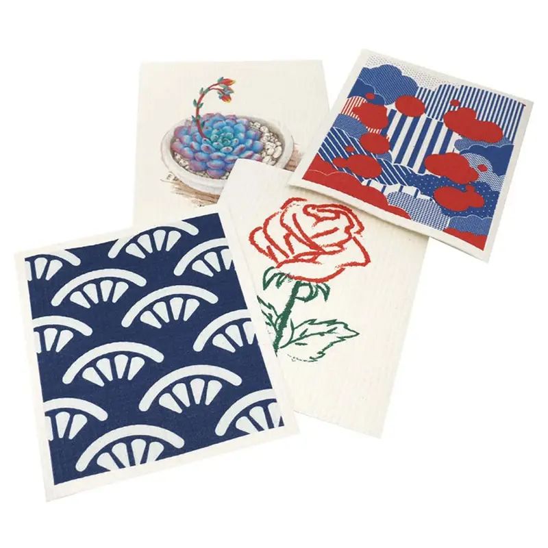 Nyomtatás Szuper nedvszívó német tisztítókendő Gyorsan száradó svéd mosogatórongy Cellulóz szivacsos törlőkendők