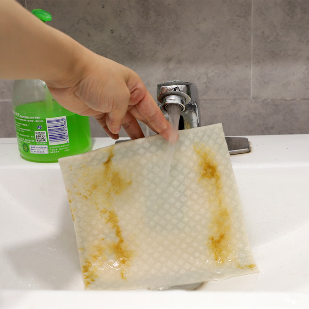 Nagy hatékonyságú olajeltávolítás: A szerkezet gyorsan felszívja az olajat. Mosogatószappannal együtt használva kiváló tisztítóerővel rendelkezik, és könnyen eltávolítja az edényekről az olajréteget és az edény alján lévő beégésnyomokat.